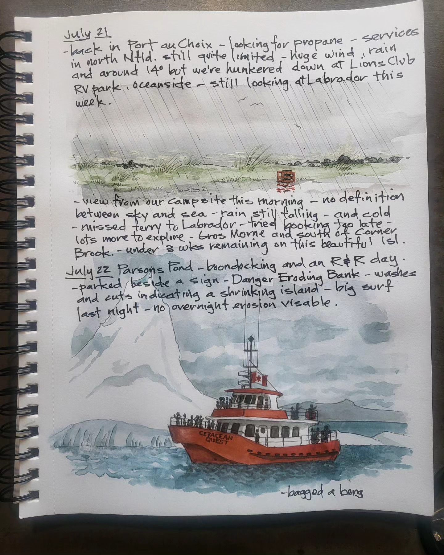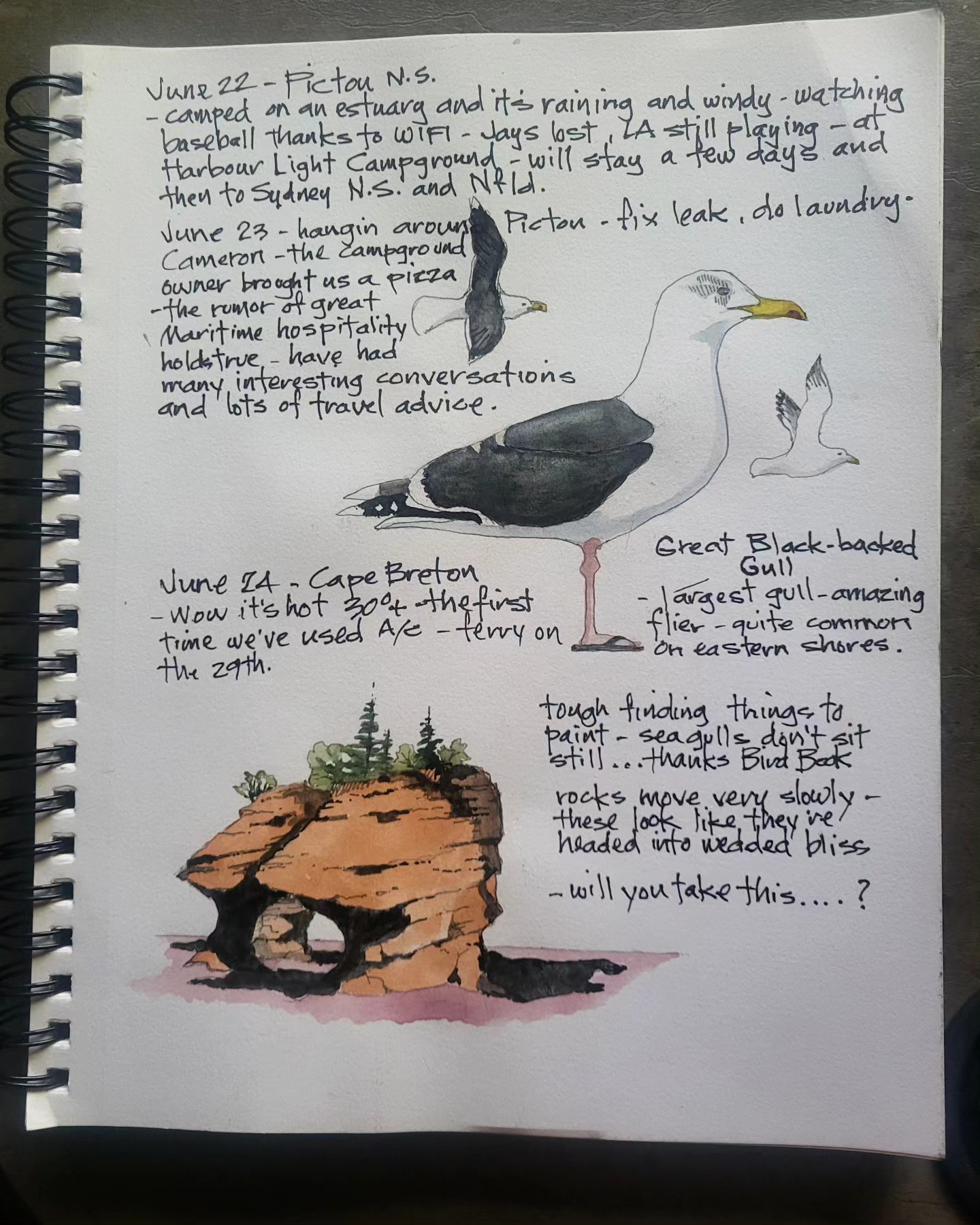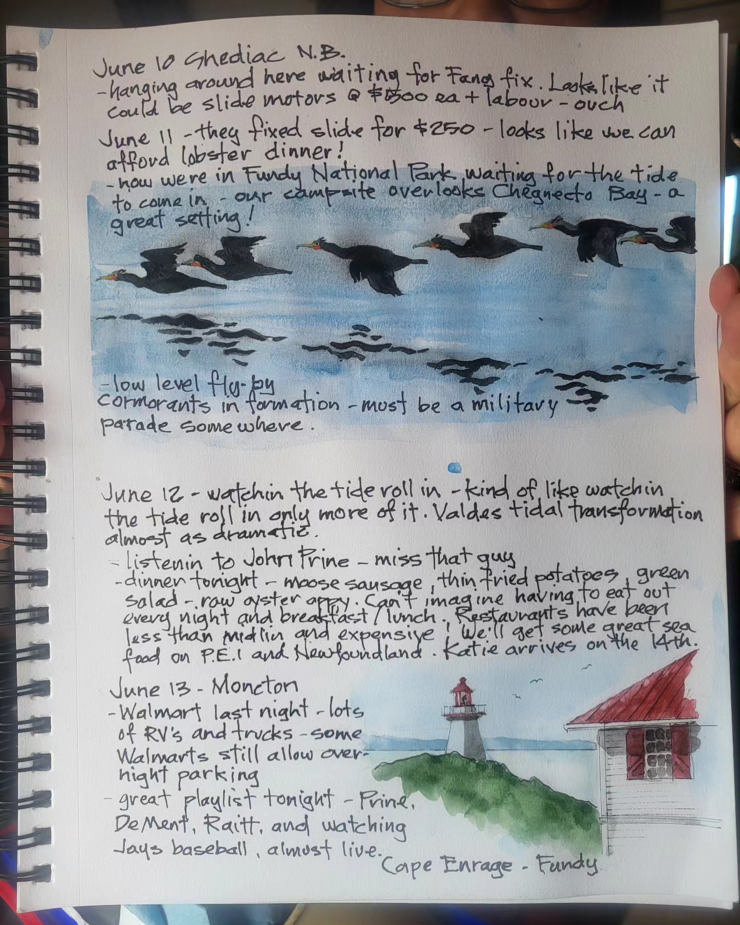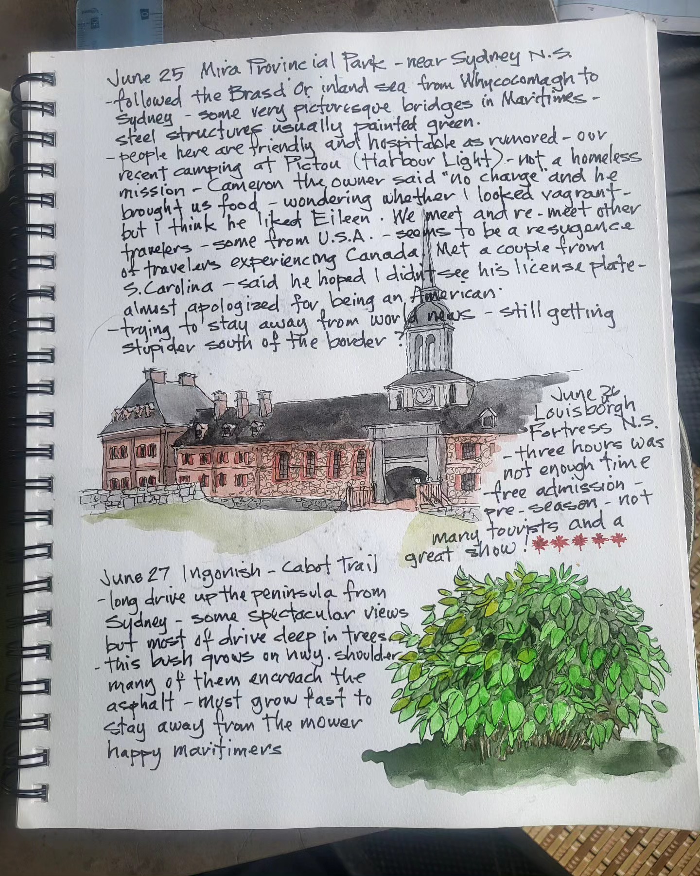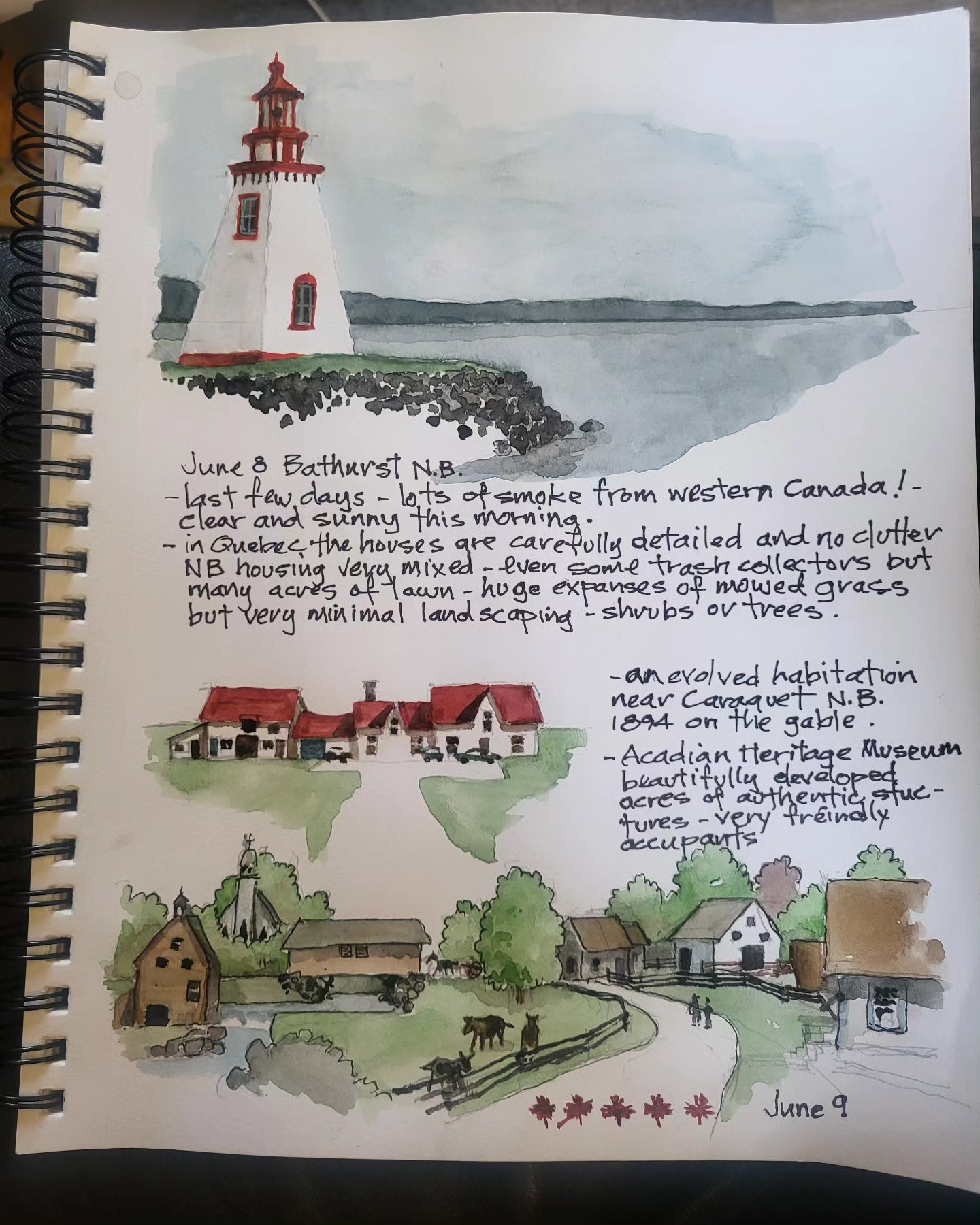 Printing copies of cross Canada 2025 travel journal — about 60 pages of watercolor sketches, notes and stories — about $40 — let me know if you’re interested.