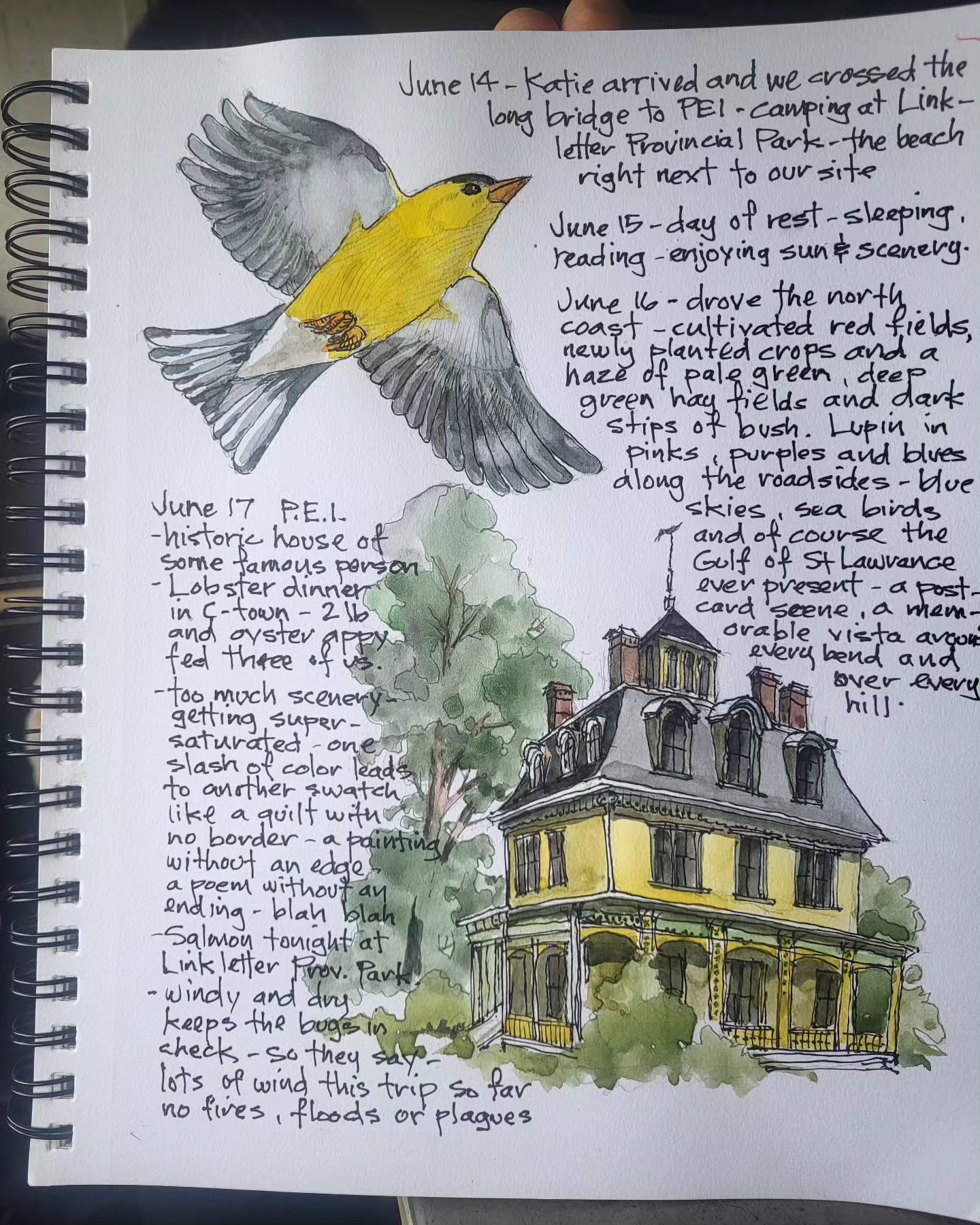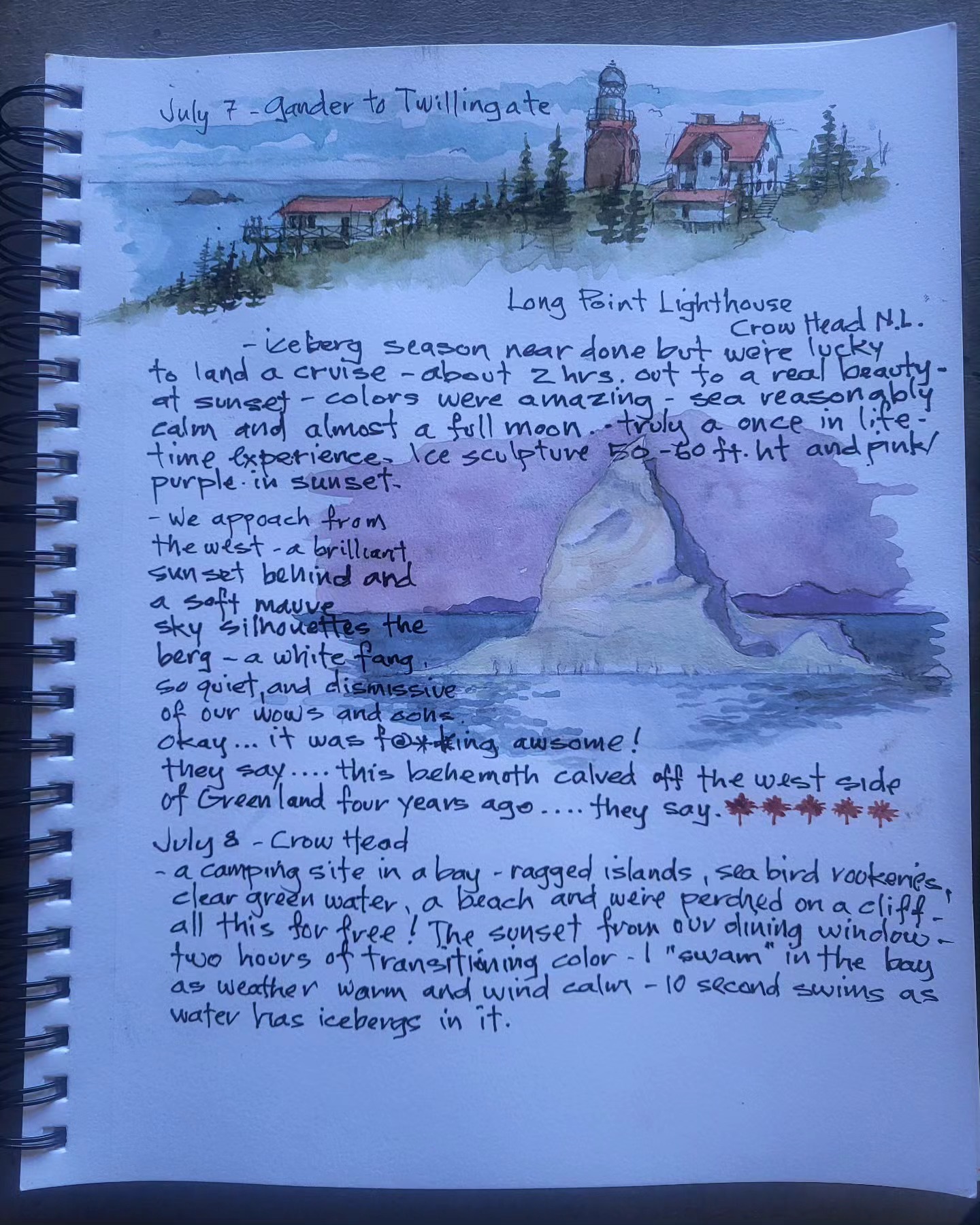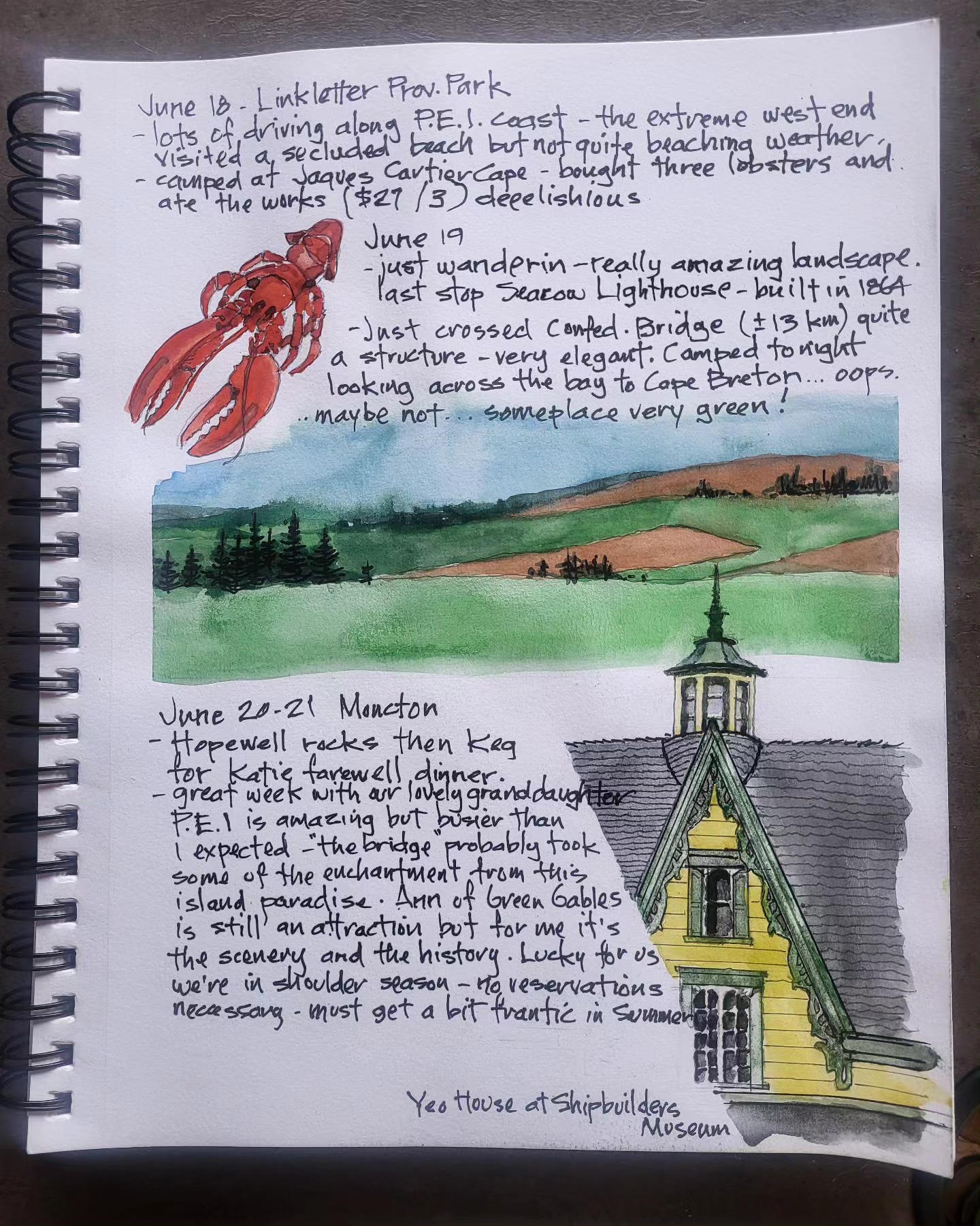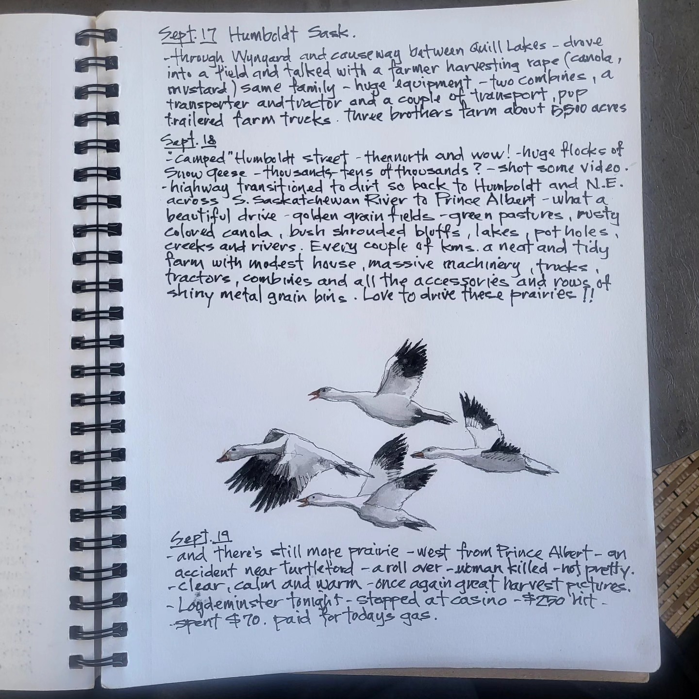 Printing copies of cross Canada 2025 travel journal — about 60 pages of watercolor sketches, notes and stories — about $40 — let me know if you’re interested.