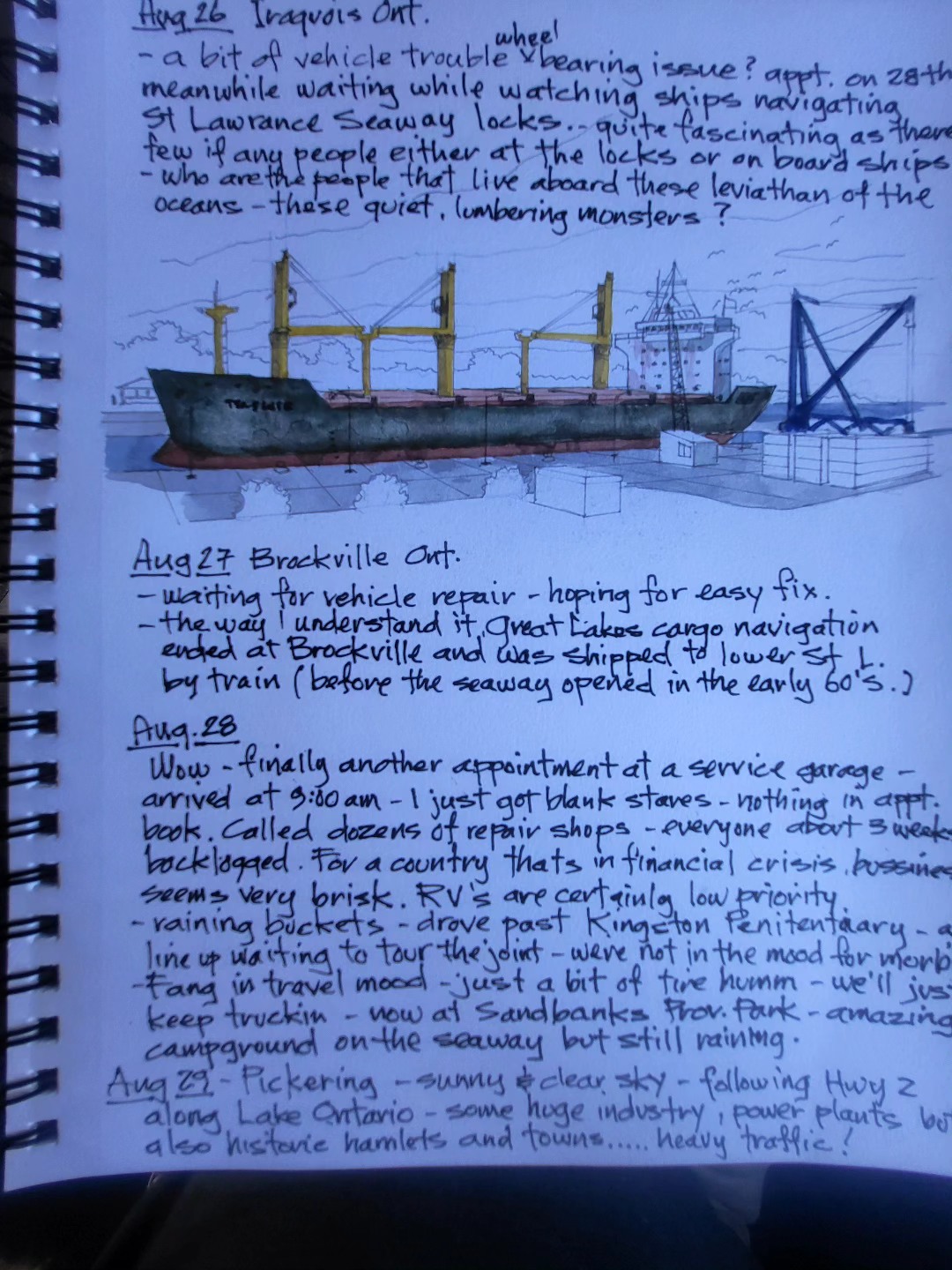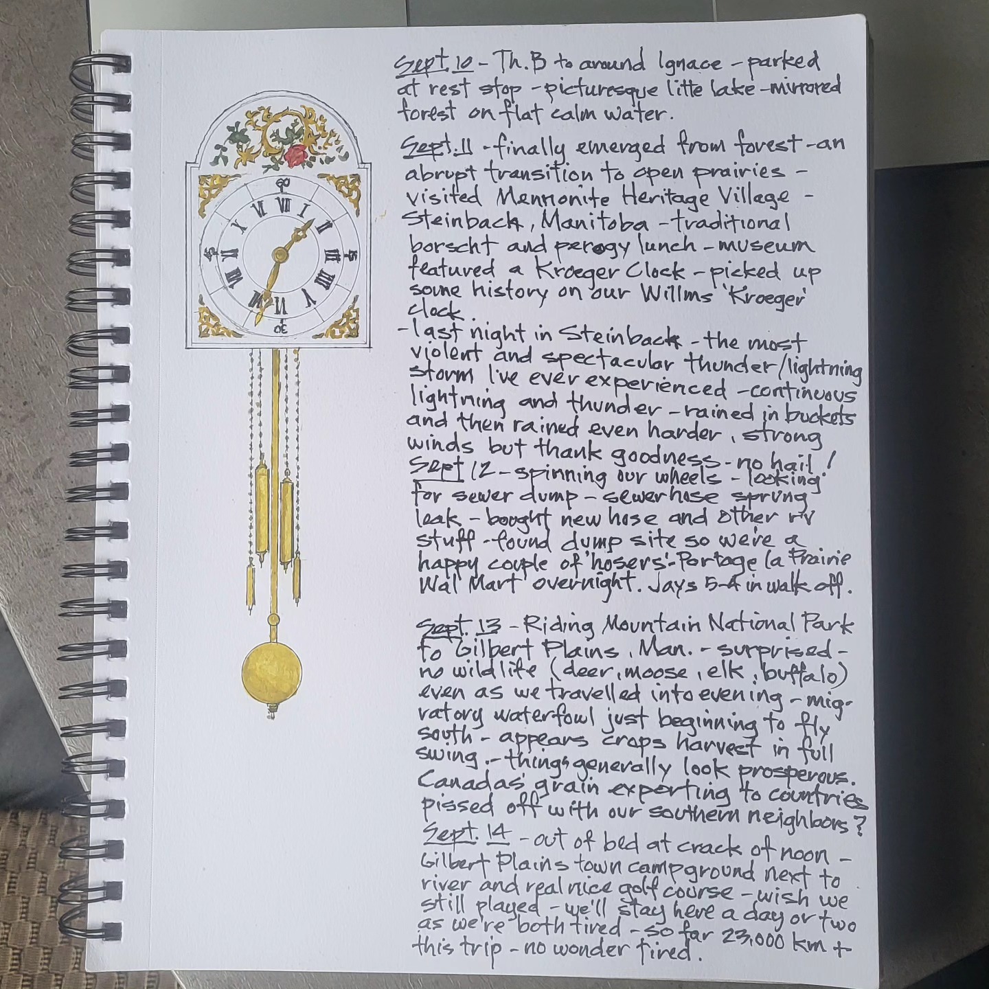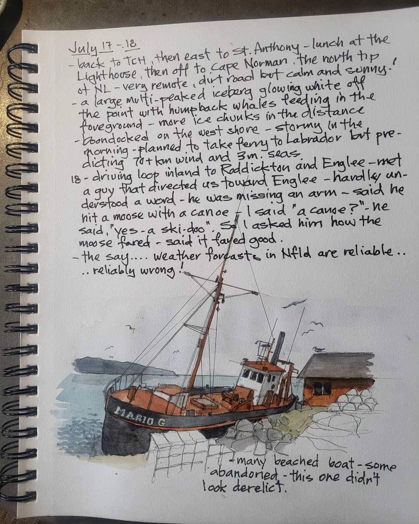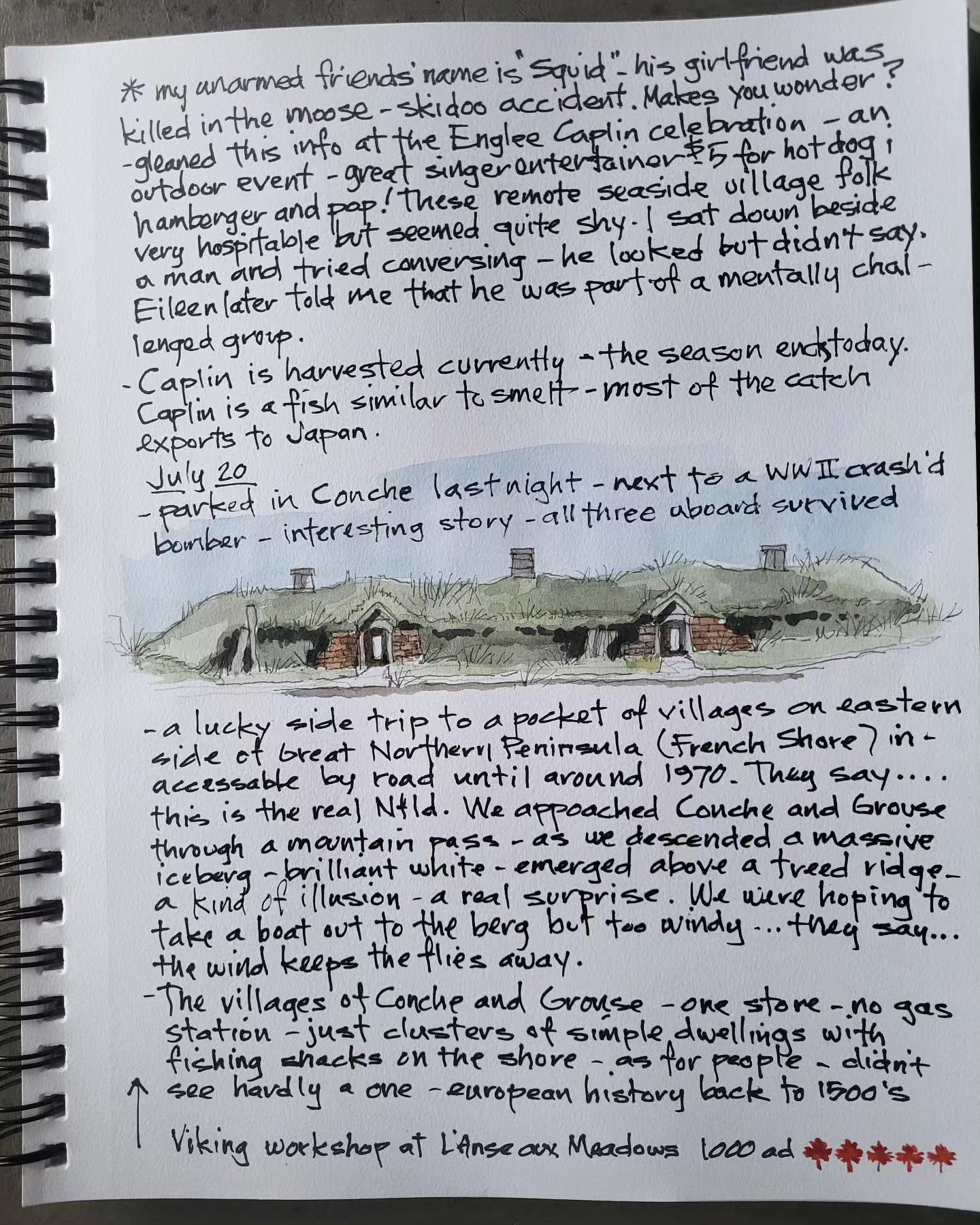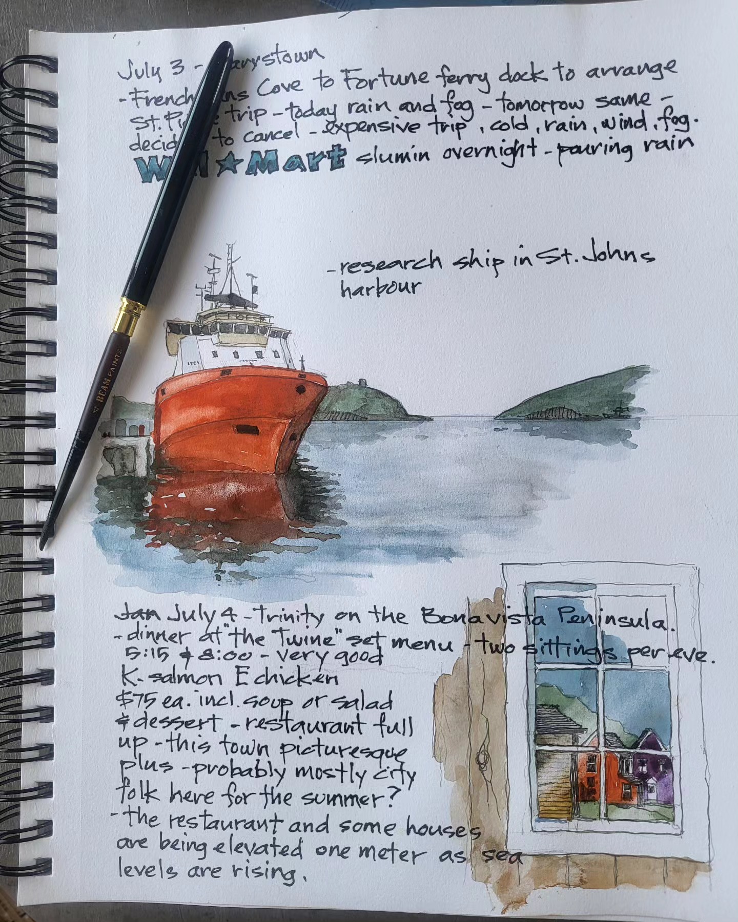 Printing copies of cross Canada 2025 travel journal — about 60 pages of watercolor sketches, notes and stories — about $40 — let me know if you’re interested.