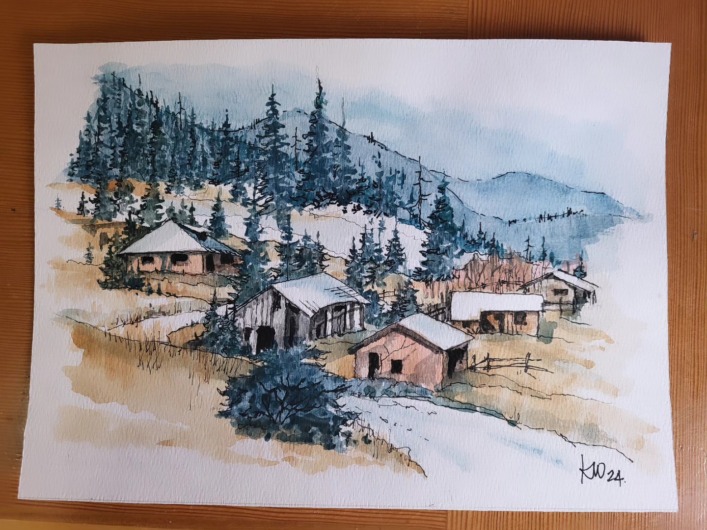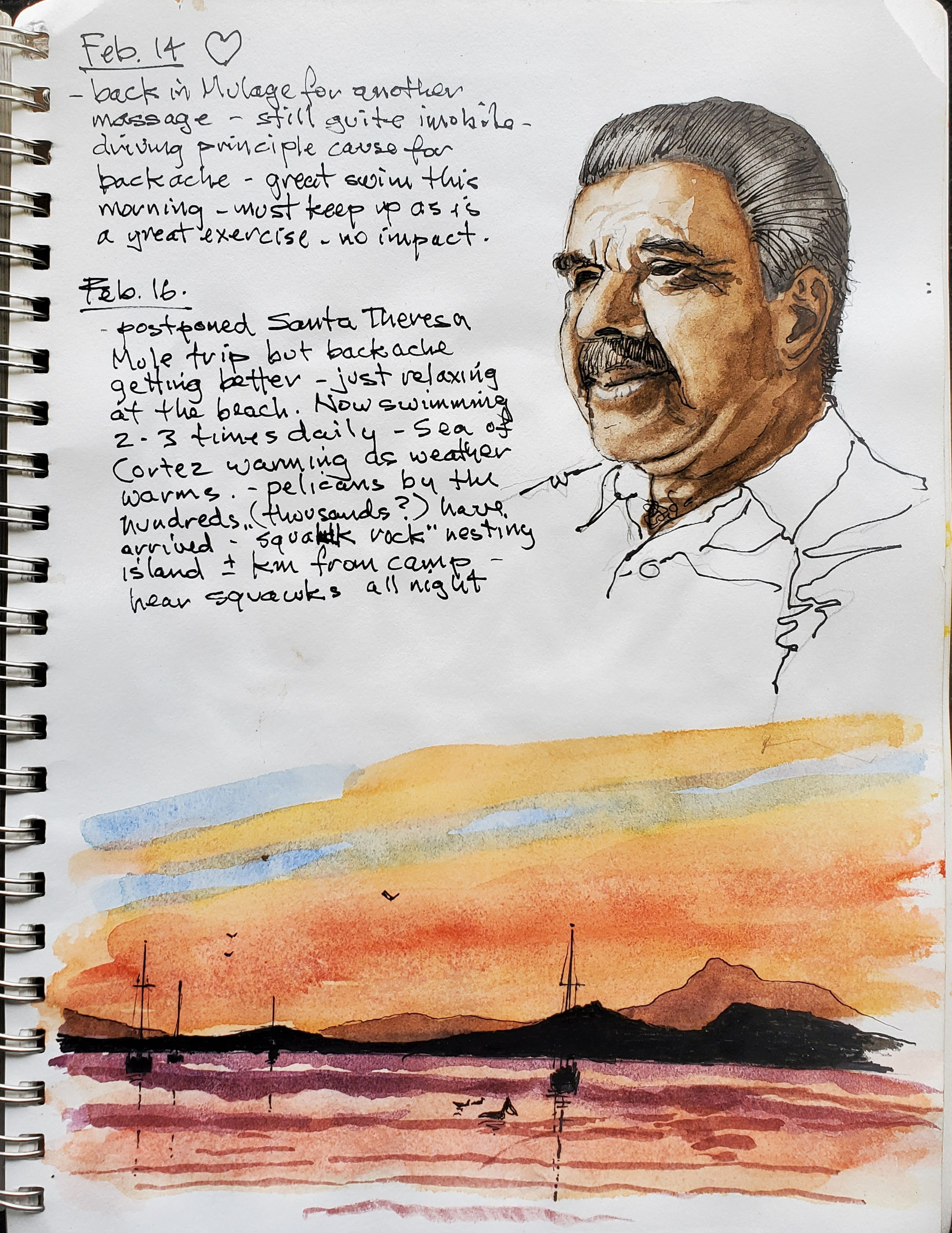 Karl Willms adds ink and watercolour drawings to his journals. His sketches feature landscapes, people and places from around the world. They are the inspiration for his watercolour paintings and oil paintings.