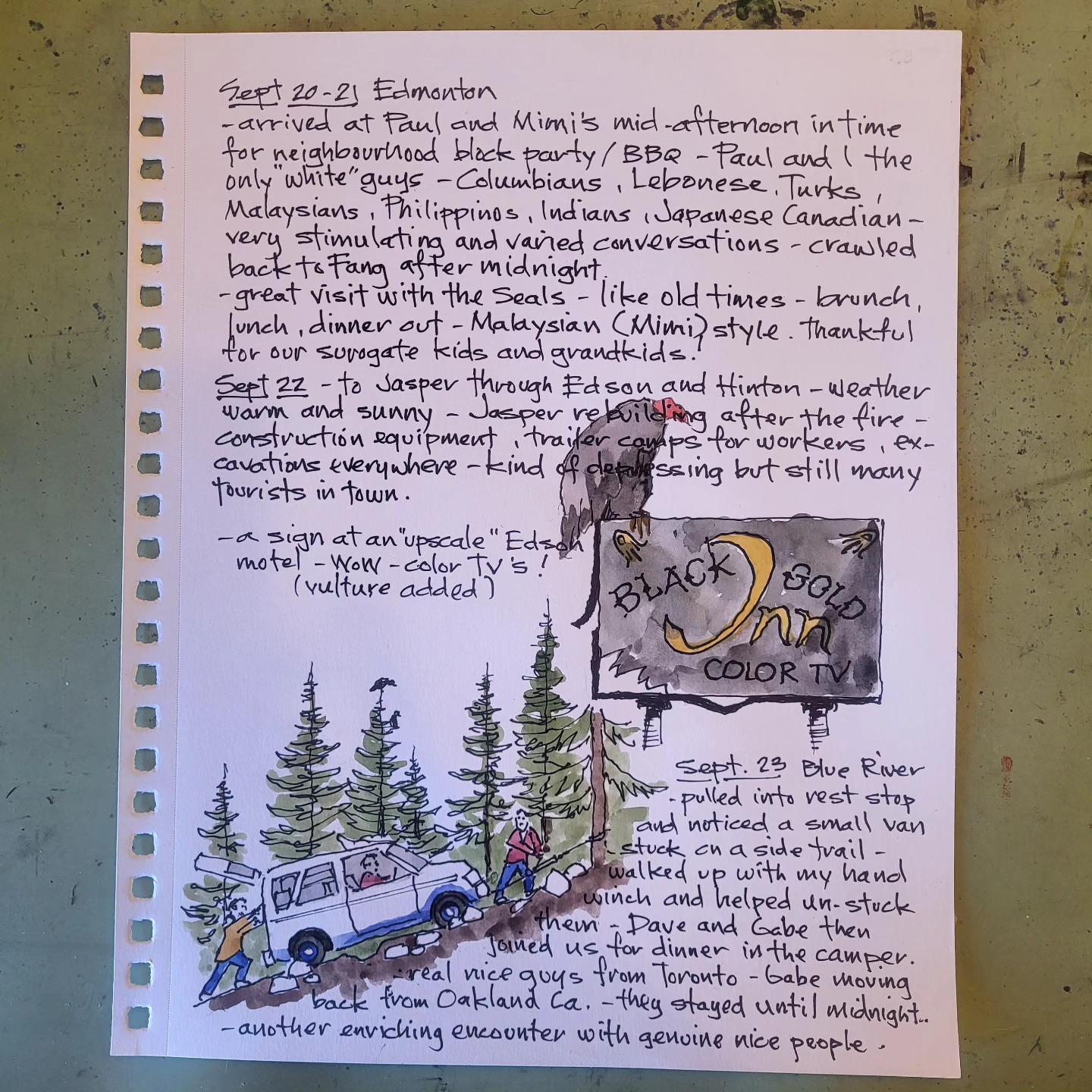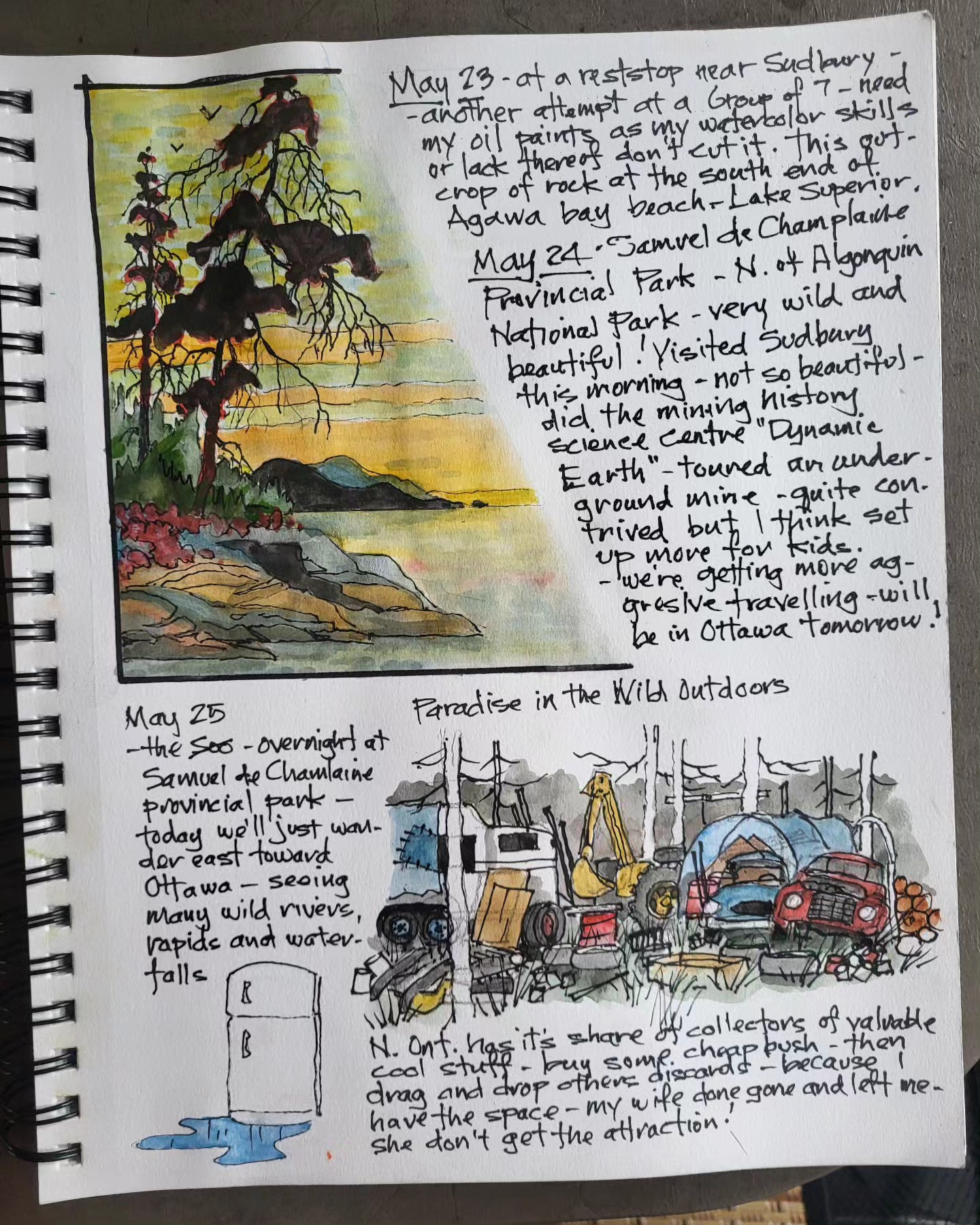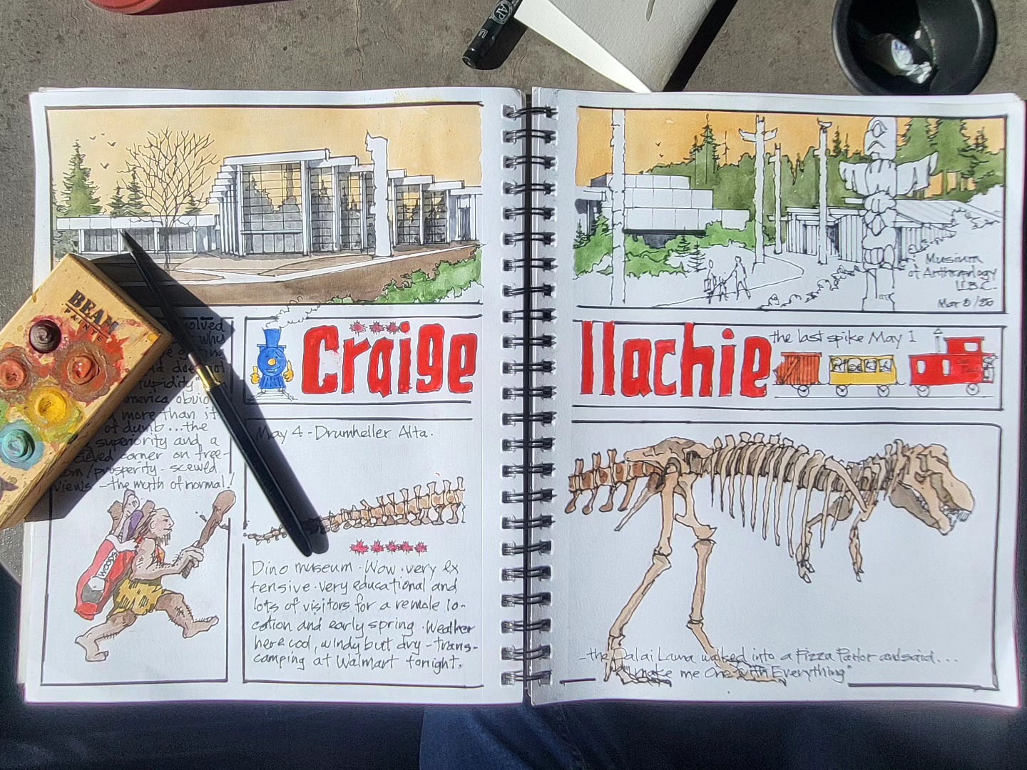Printing copies of cross Canada 2025 travel journal — about 60 pages of watercolor sketches, notes and stories — about $40 — let me know if you’re interested.